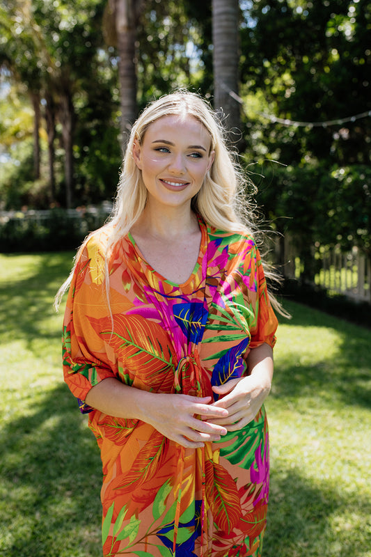 Rosa-lee Draw String Kaftan Dress Floral